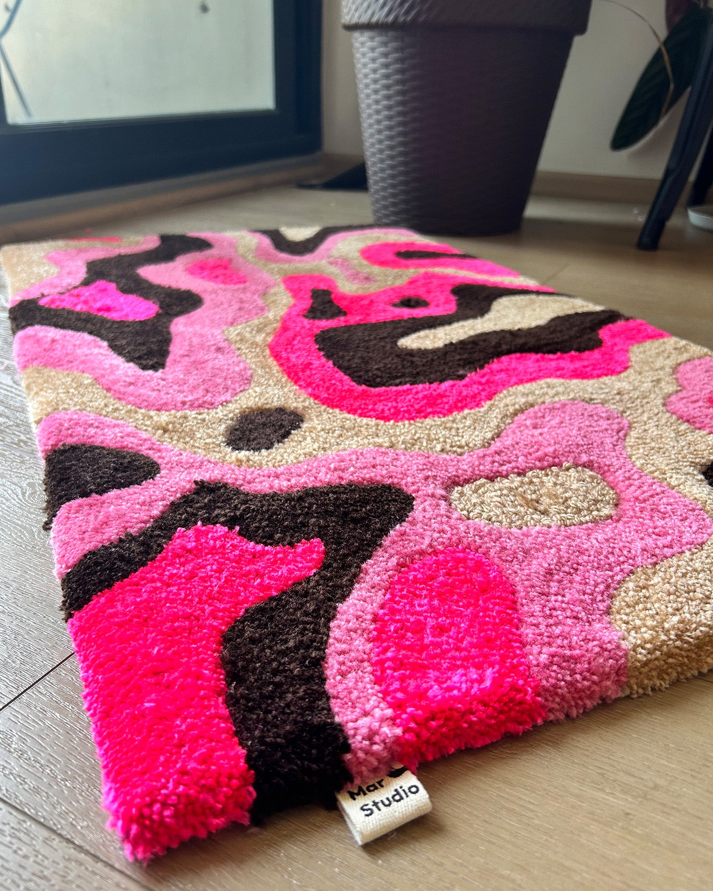 *Esta pieza está hecha con la técnica de cut pile y tiene algunos detalles hechos con loop pile 🧶